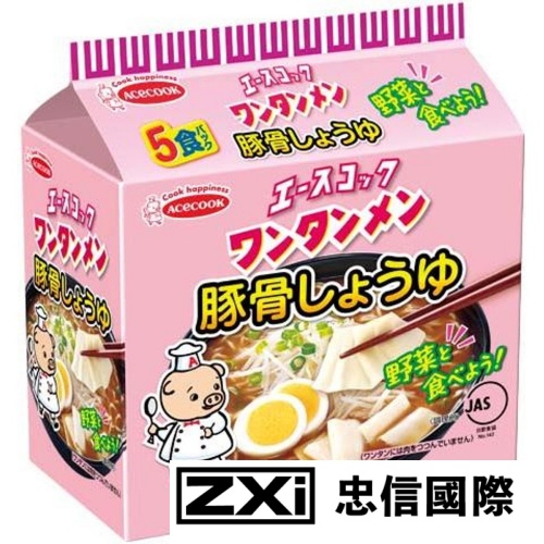 《エースコック》小豬5食餛飩風味豚骨醬油味包麵