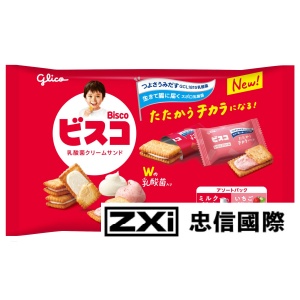 《江崎グリコ》固力果奶油夾心餅乾家庭號(牛奶風味&草莓風味)